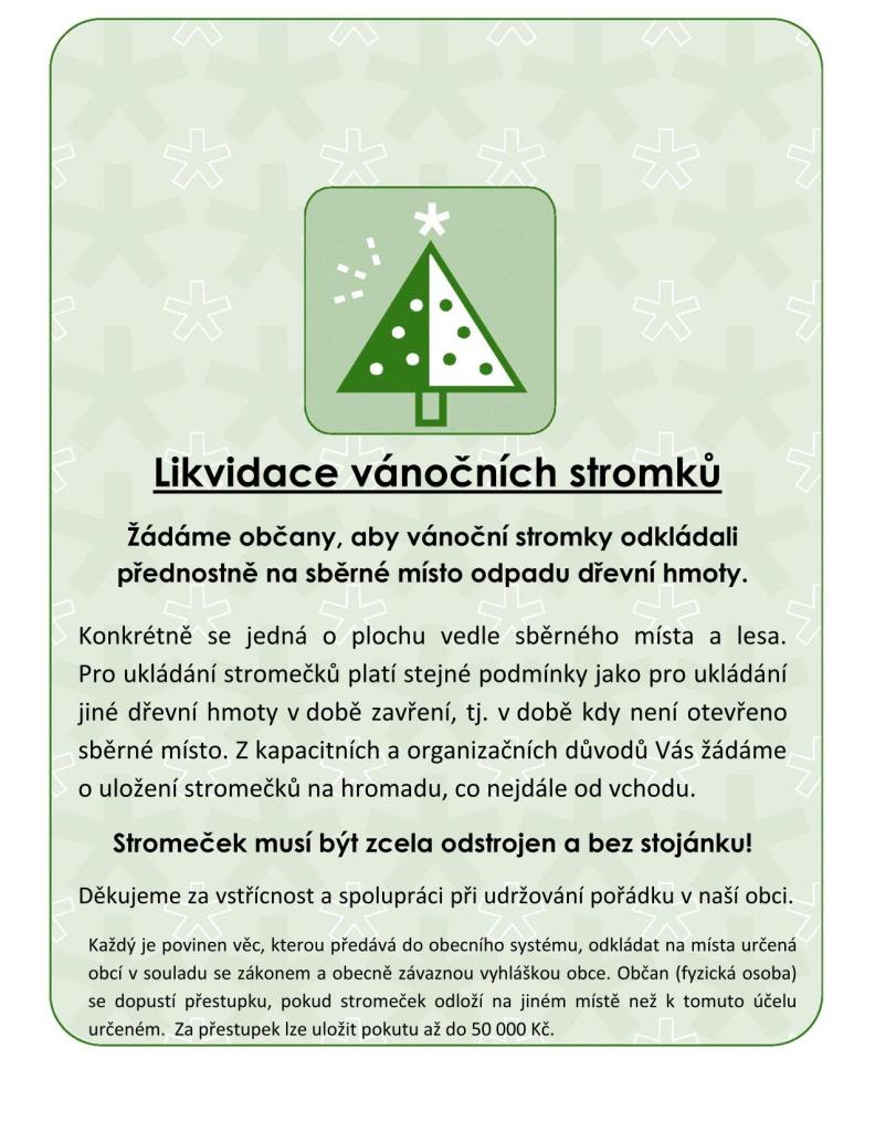 Žádáme občany, aby vánoční stromky odkládali přednostně na sběrné místo odpadu dřevní hmoty. (vedle sběrného místa)